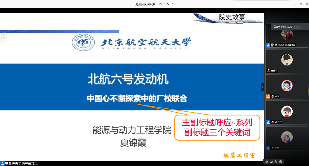 williamhill威廉希尔自2019年5月启动院史工作以来,以老中青三代动力人共同讲述“中国心”的故事为主题,以开展“不忘初心、牢记使命”主题教育为契机,传承北航红色基因,进一步落实立德树人根本任务,着力于培养德智体美劳全面发展的社会主义建设者和接班人。