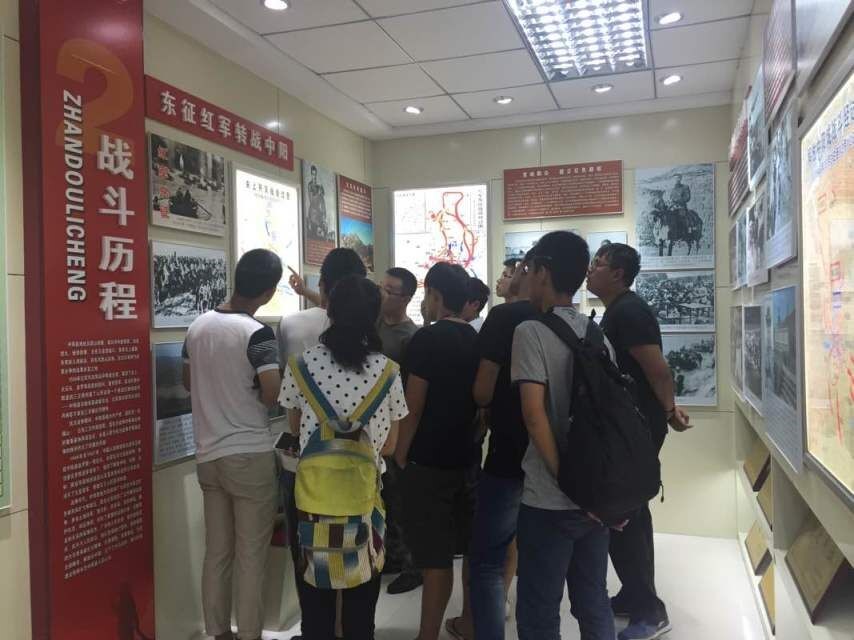 在这里我们参观了新建不久的展览馆,该展览馆主要分为历史沿革、战斗历程、建设成就、中阳英杰以及国防教育五部分。武装部专门人员为我们进行了详细的讲解。讲解人员主要为我们讲述了红军东征历史上的首场大捷,史称“关上大捷”的战役,这也为我们下一站参观的关上战役纪念碑做了铺垫。