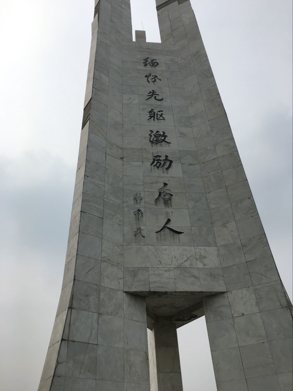 经过半个多小时的山路,一路上怀着对革命先烈的敬仰之情,我们终于来到了今天的第二站关上战役纪念碑。远远地,我们就望见了高高耸立的纪念碑。