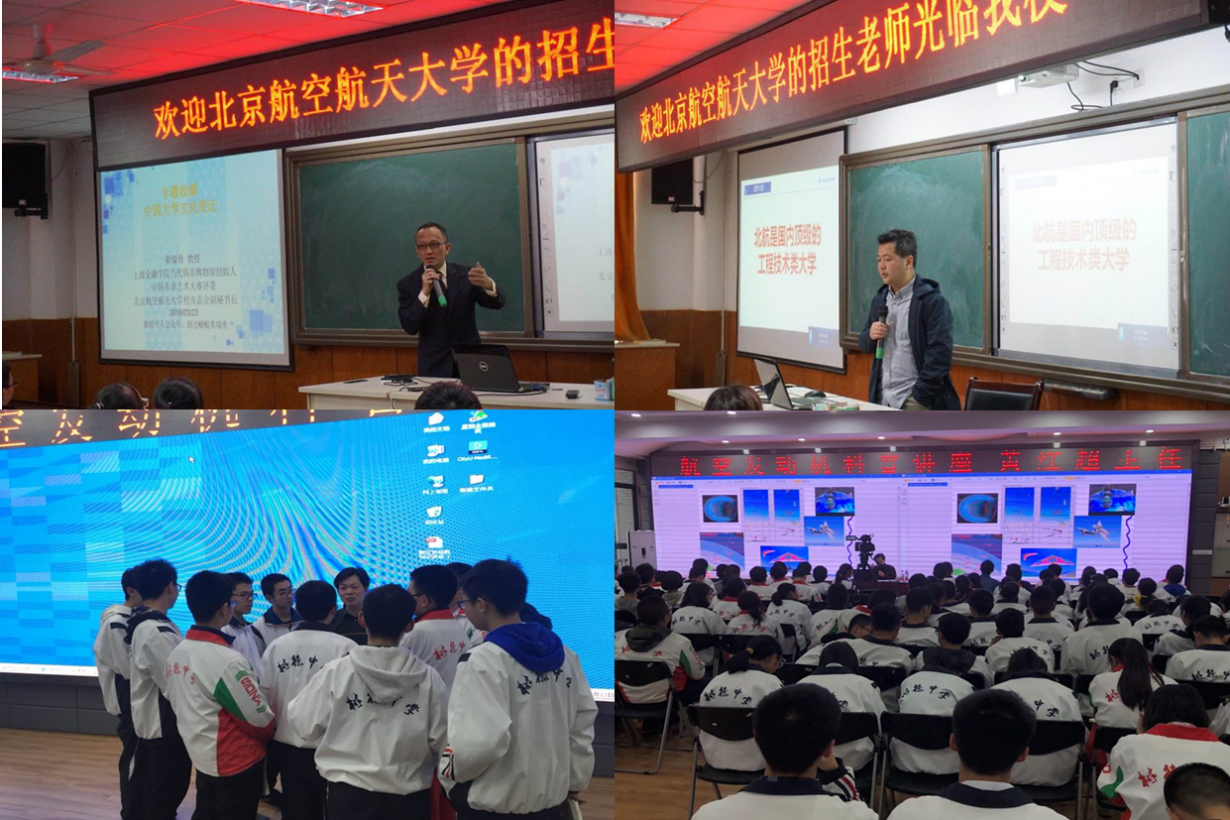 联合北航校友会和北航四川校友会组成校友宣讲团进四川重点中学。3月23日,在成都市铁路中学,北航校友总会副秘书长、上海金融学院融理当代金银币文化研究所所长黄瑞勇作题为《中国大学文化和北航》讲座,结合自身艺术品和钱币的兴趣爱好,以收藏品-纪念章为切入点,讲述北航的故事。北航四川校友会副会长、成都市矽谷产业加速器科技有限公司董事长李辉作题为《北航与成长》讲座,结合自身的经历,详细的介绍了北航的历史、学习与生活、发展与展望。在成都树德中学,中国航发四川燃气涡轮研究院总体性能研究室主任黄红超研究员作《航空发动机知识讲座》,从简单的航空知识出发,由浅入深讲解航空发动机原理;讲座后,黄主任与同学们交流航空发动机相关问题。除此之外,北航四川招生副组长、williamhill威廉希尔党委副书记方志作招生宣传讲座。