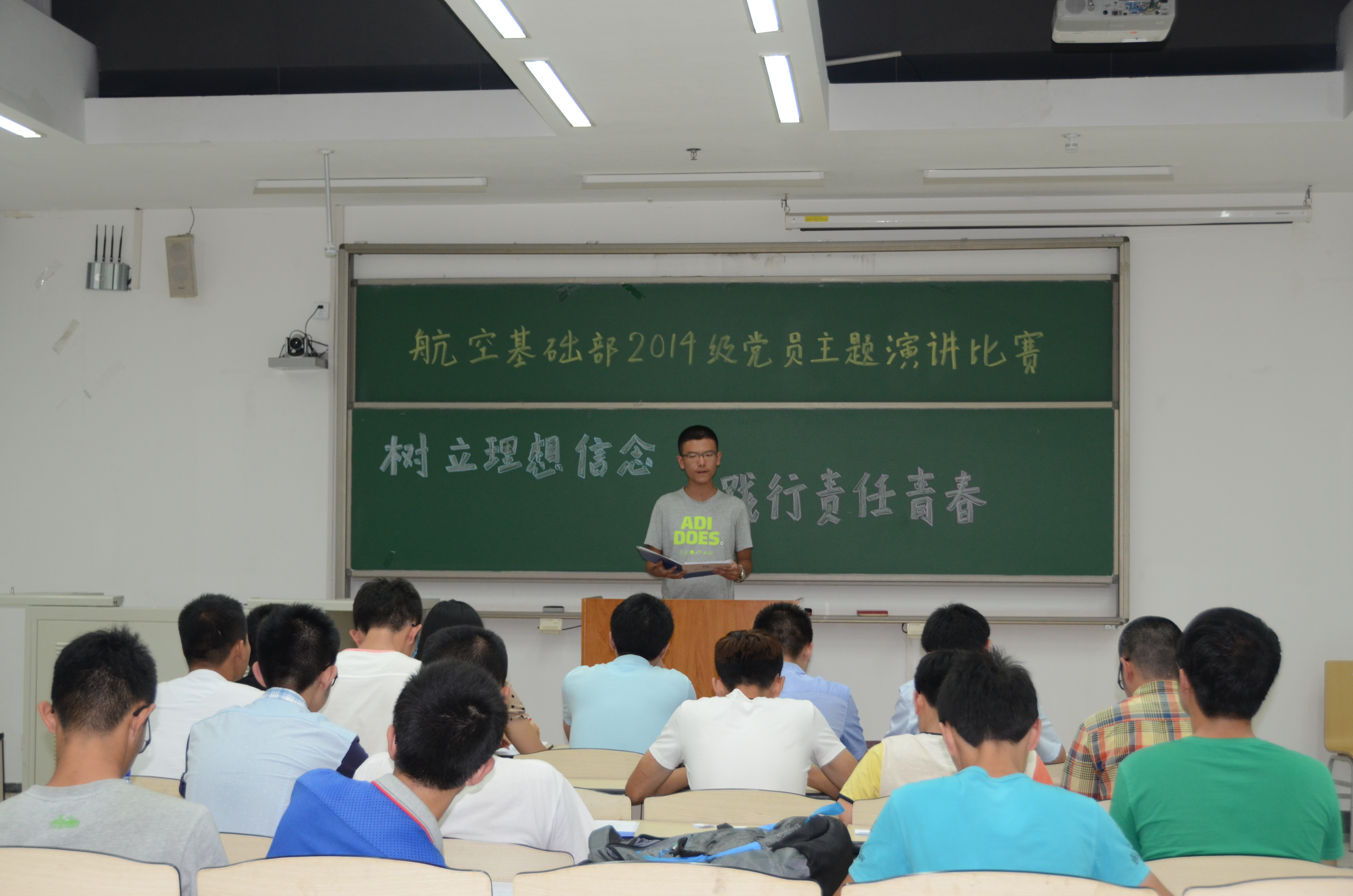 2014年8月29日晚,williamhill官网航空基础部于沙河校区组织进行了新生党员主题演讲比赛,此次演讲比赛主题为“树立理想信念,践行责任青春”。
