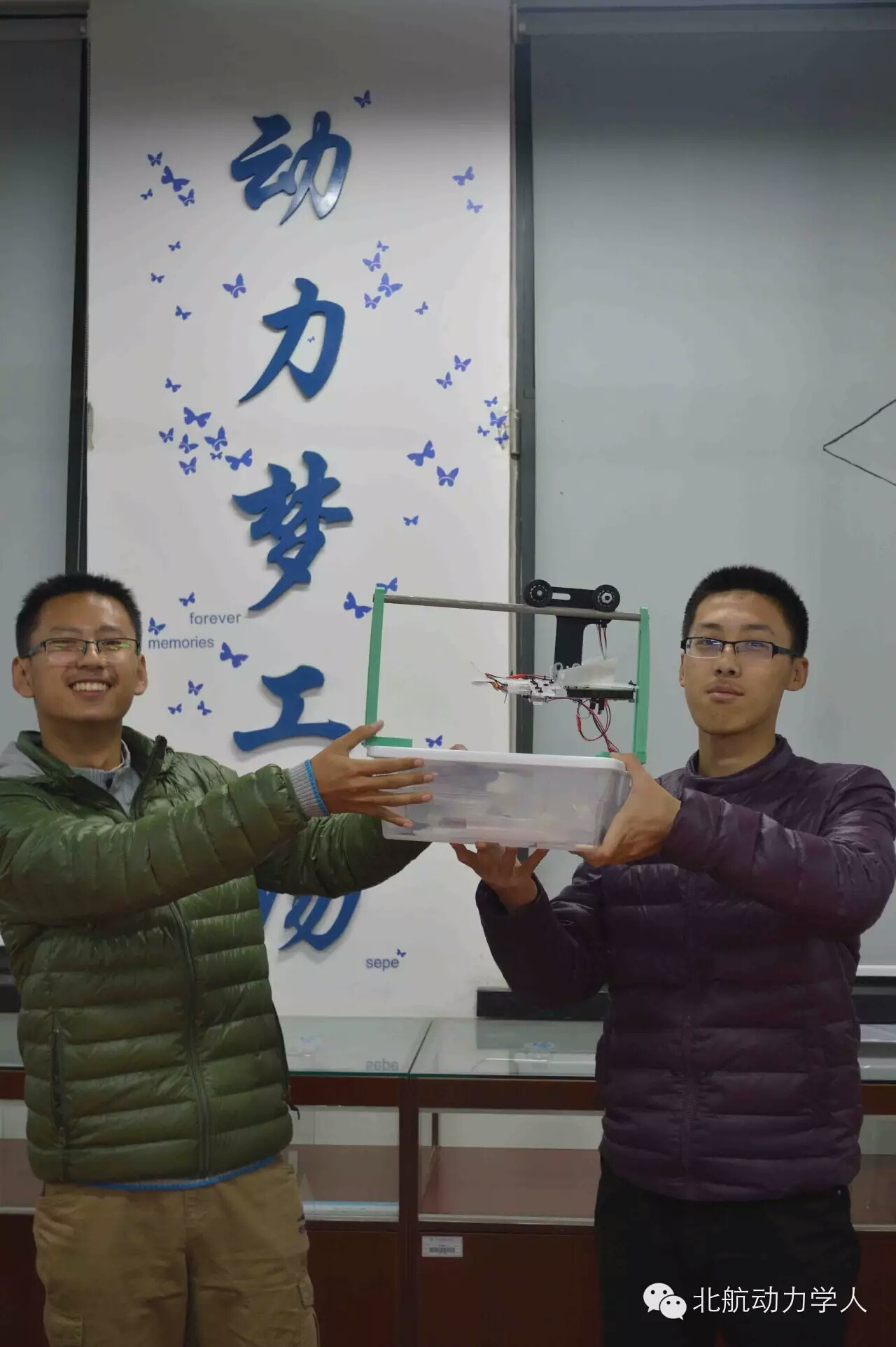 “动力梦工场”以及AEV课程的诞生源于2014年7月的BUAA-OSU(北航-俄亥俄州立大学)暑期交流项目。我院5名13级吴大观英才班的同学在学院领导和辅导员的大力支持下,借CDIO-AEV课程为基础,建立了AEV课程与“动力梦工场”。 本期课程由14级的杨哲夫与夏德宏主讲。杨哲夫同学首先向大家介绍了AEV的基本概念与理念,让同学们初步了解到什么是AEV。接着,夏德宏同学简单地介绍了Arduino单片机开源系统平台的硬件、软件知识。随后,他向大家详细介绍了代码的编写,与AEV的基本结构等知识。在认真听取讲解后,同学们两人一组,在助教的帮助下,开始设计自己心仪的外形。组装成功后,同学们通过不断地测试、修改结构,最终完成了AEV的组装。第一讲顺利结束。