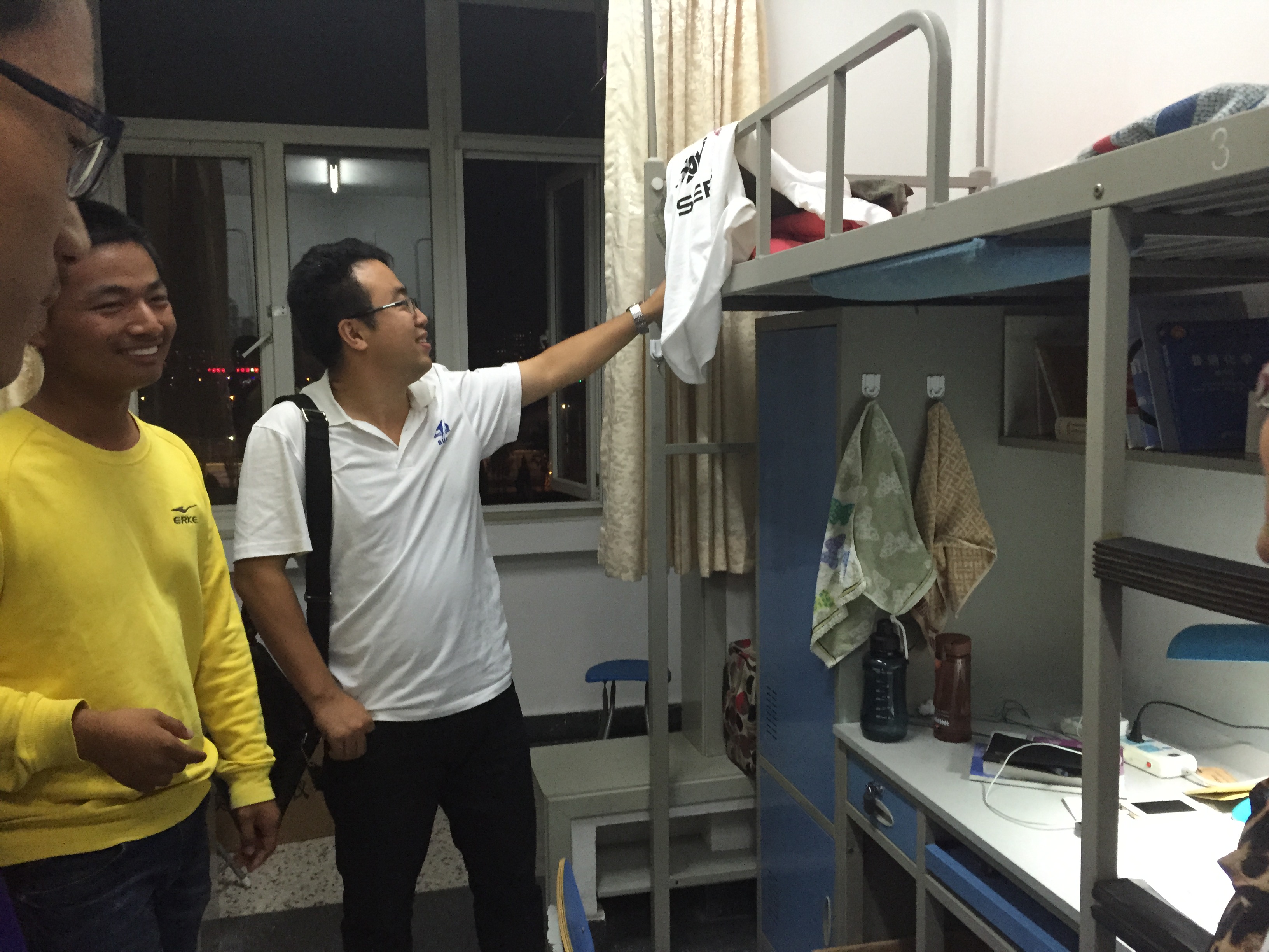 9月26日晚,williamhill威廉希尔党委副书记李建伟老师、分团委书记方志老师代表williamhill威廉希尔丁水汀院长、王强书记到沙河校区走访宿舍看望2015级新生,并发放中秋慰问品。