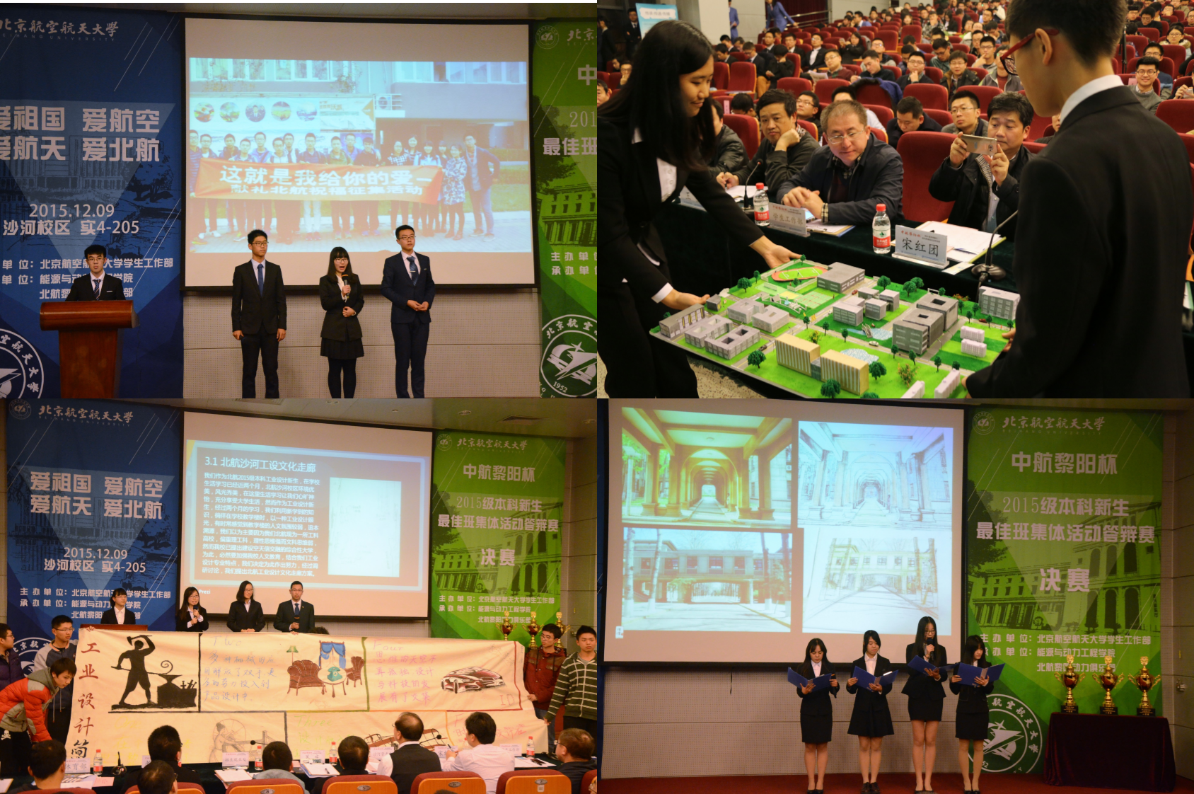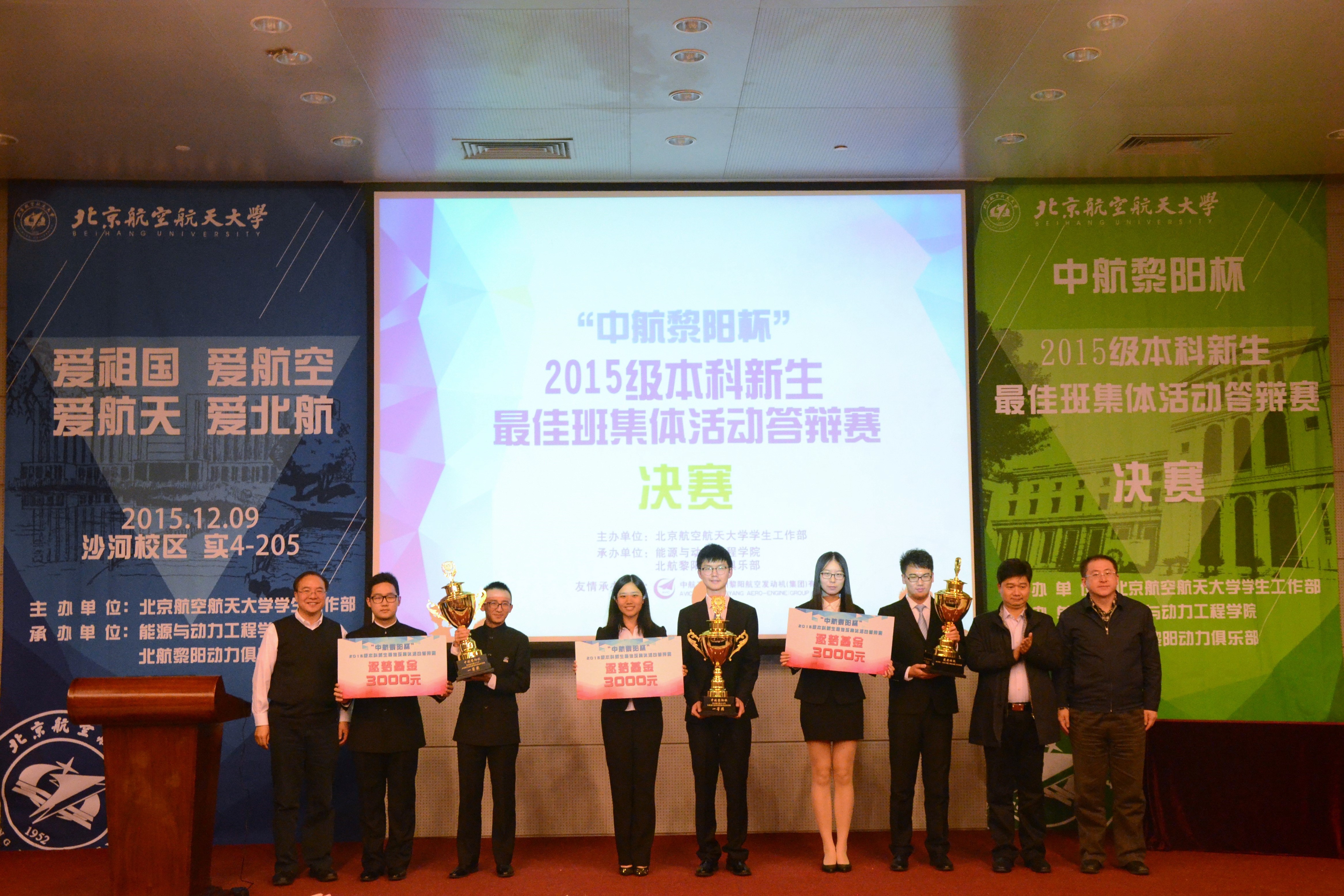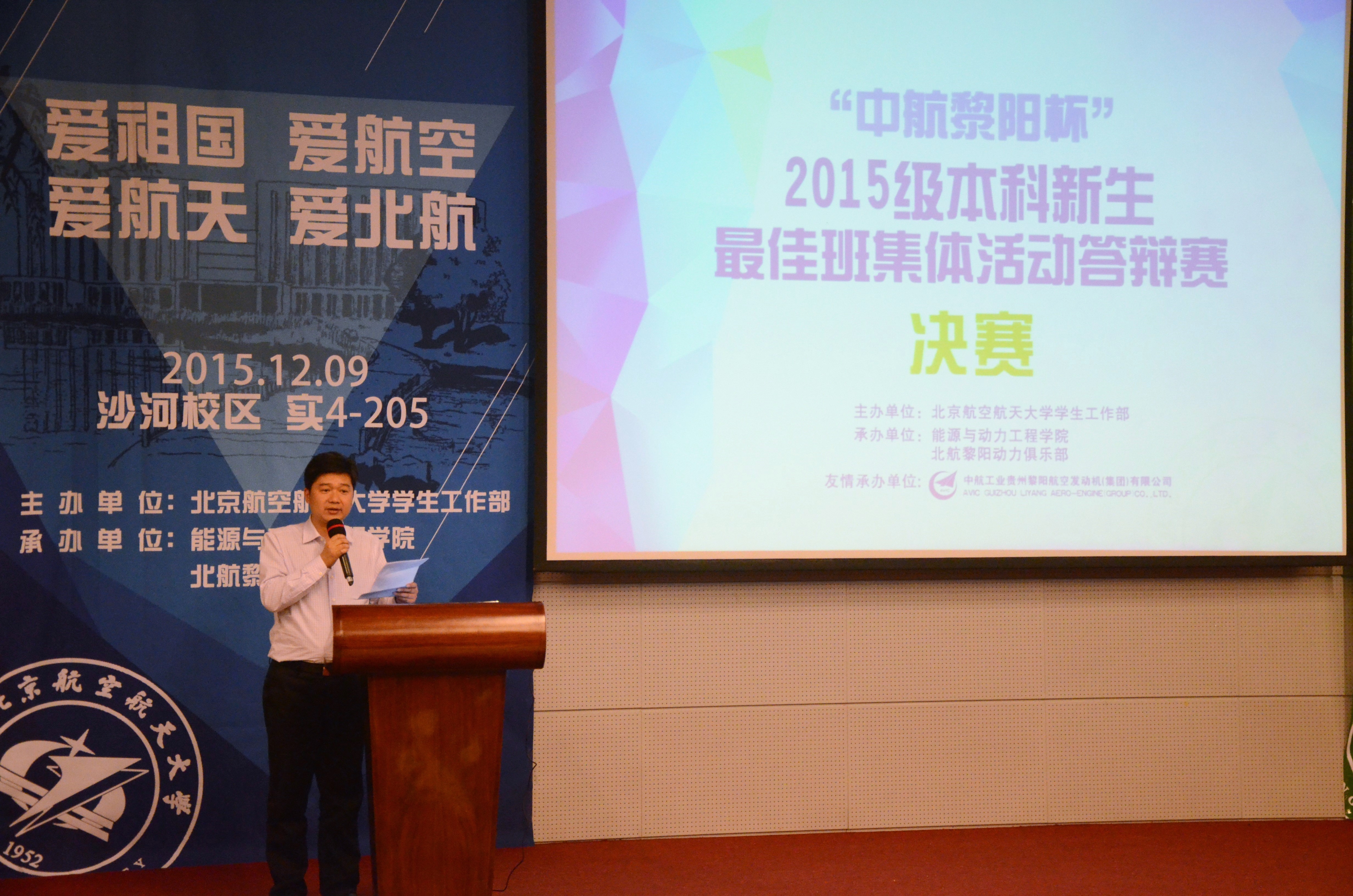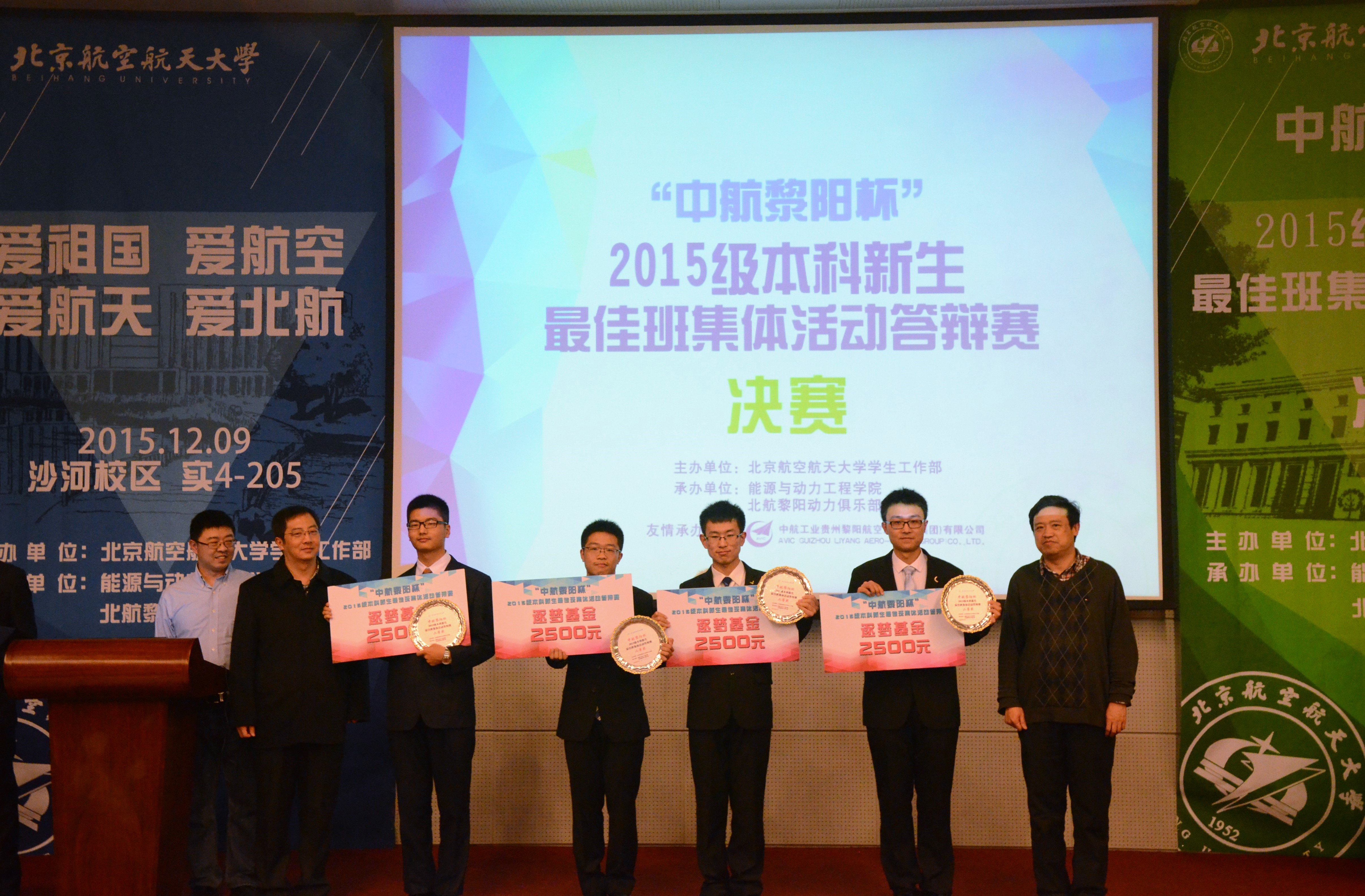据悉,一年一度的北航新生最佳班集体活动答辩赛自1989年以来在我校每届本科新生中举办,是我校本科生参与度最高、影响面最广、持续时间最长的一项活动。活动以新生团结协作为原则,以凝心聚力为导向,以特色活动为载体,以班集体发展建设为根本,鼓励新生展现青春风采、树立文明新风、创建优良班风学风,是对各学院2015级本科新生教育工作组织开展情况和效果的全面检验。今年的答辩赛继续在中航工业贵州黎阳航空发动机(集团)有限公司的支持下举办,通过比赛,进一步增进了校企双方的交流互动,搭建了航空企业与低年级本科生交流的平台,受到了学生的普遍欢迎。