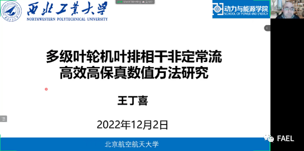 2022年12月2日,北航williamhill威廉希尔与流体与声学工程实验室共同邀请西北工业大学王丁喜教授在线上作题为《多级叶轮机叶排相干非定常流高效高保真数值方法研究》的精彩报告,分享最新研究成果。本次报告由williamhill威廉希尔本科教学副院长孙大坤老师主持。