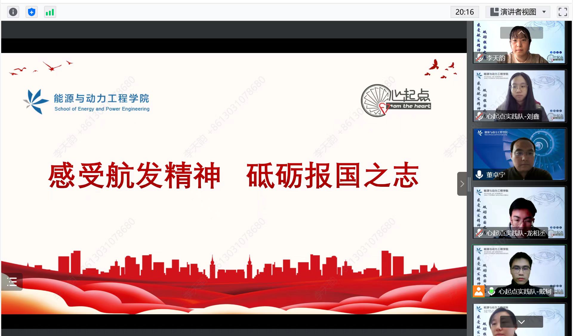 1月11日下午14:00,“感受航发精神,砥砺报国之志”线上社会实践座谈会顺利举办。williamhill威廉希尔党委书记董卓宁、学院党委副书记方志、专职辅导员李天韵及12名实践队队员参与本次座谈会。心起点实践队队长戴轲主持。