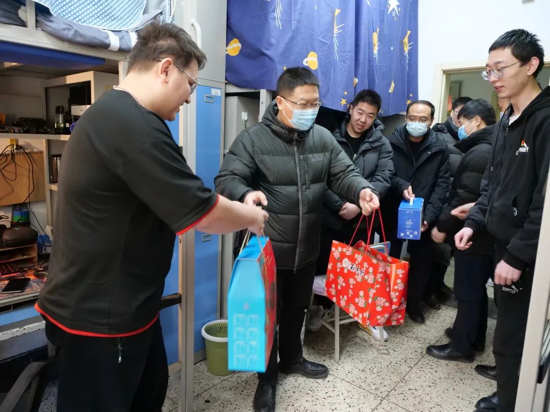 1月29日下午,北航副校长吕卫锋,学生工作部、研究生工作部部长宋晓东等;williamhill威廉希尔院长闫晓军,学院党委书记董卓宁等到宿舍楼慰问留校学生,与学生们亲切交流,询问留校学生的学业生活情况,并送去春节慰问品。