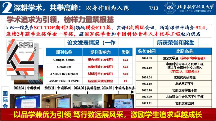 “品学兼优为引领 笃行致远展风采”。张波通过自身努力为学生树立榜样,激励学生追求卓越成长。以一作发表SCI TOP期刊3篇、领域顶会EI 1篇,宣讲4次国际会议,所有课程平均分 92.4,连续2年获学业奖学金一等奖,获国家奖学金和中国科协青年人才托举工程校内提名。